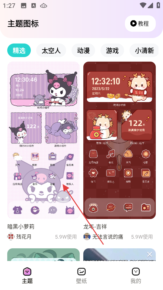 1、在主题图标页面,选择心仪的主题,进入主题详情页。