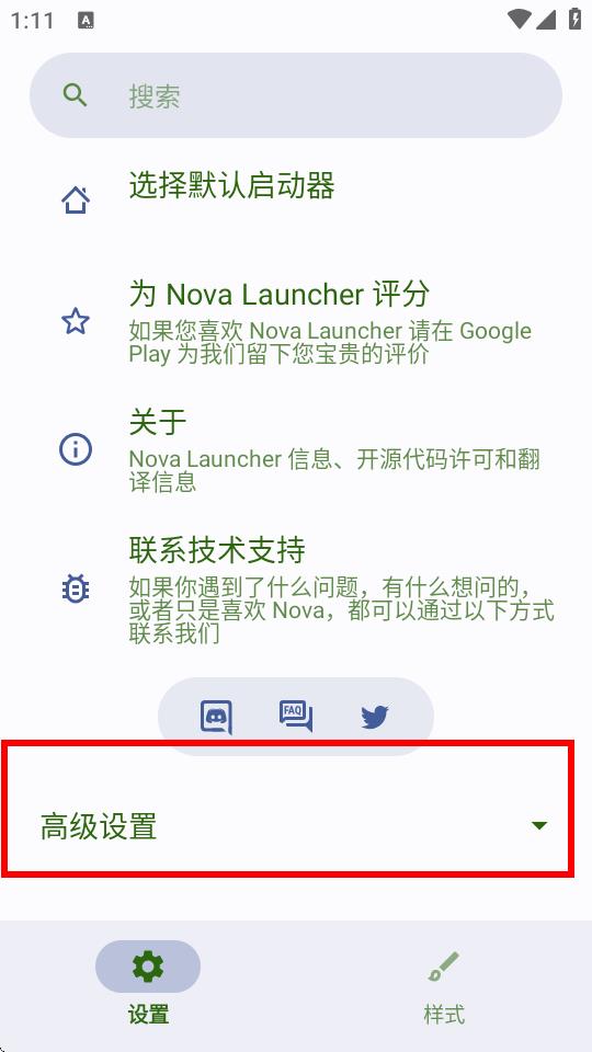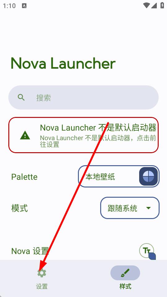 1、打开Nova应用,点击主界面下方的设置选项。
