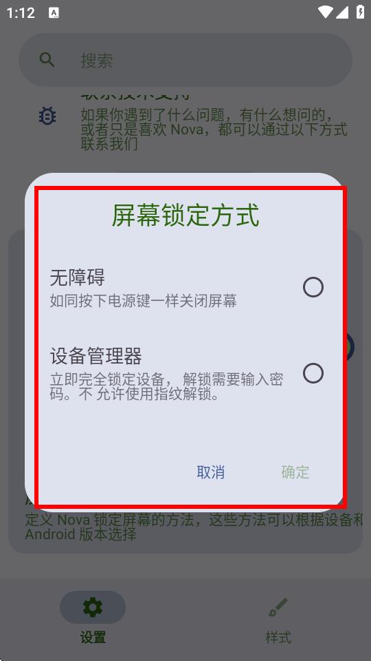 4、在弹出的屏幕锁定方式窗口中,选择你需要的锁定方式,选择后点击确定即可完成设置。