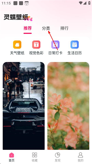 1、在灵蝶壁纸首页,点击分类选项,进入分类页面。