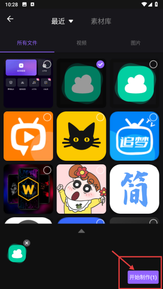 1、打开视频编辑类APP,点击视频编辑选项,进入素材选择页面。