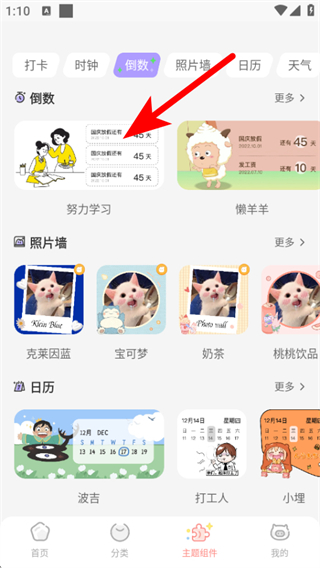 3、在倒数组件列表中,选择心仪的组件,进入倒数日页面。