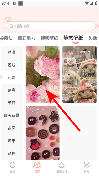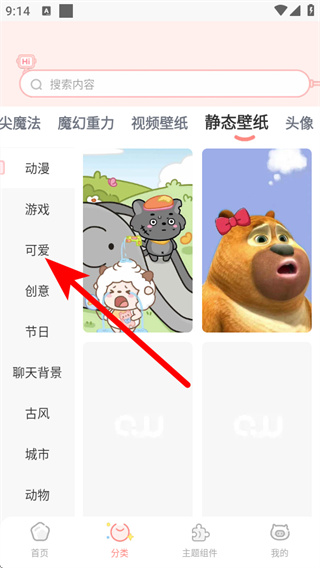 2、在壁纸分类页面,点击可爱分类,进入对应壁纸列表。