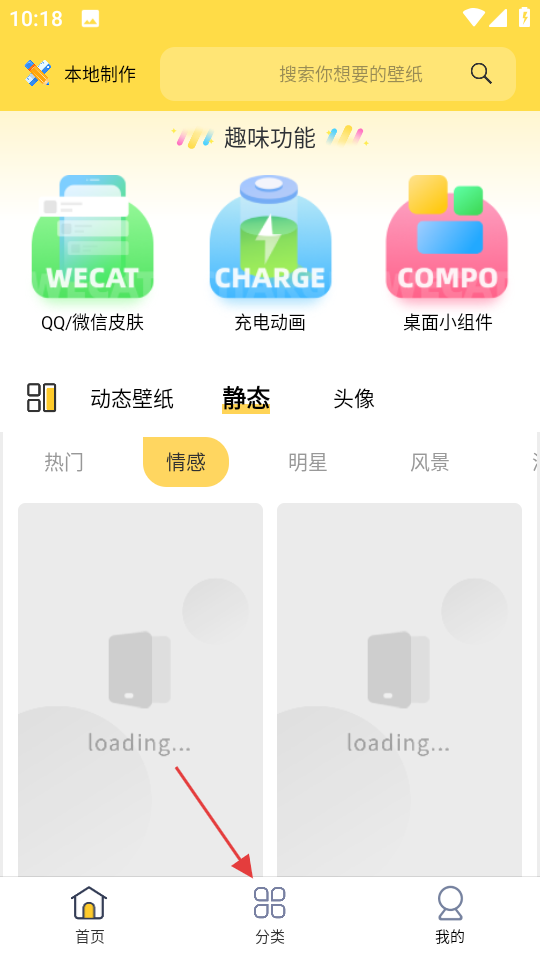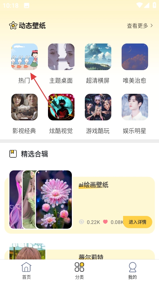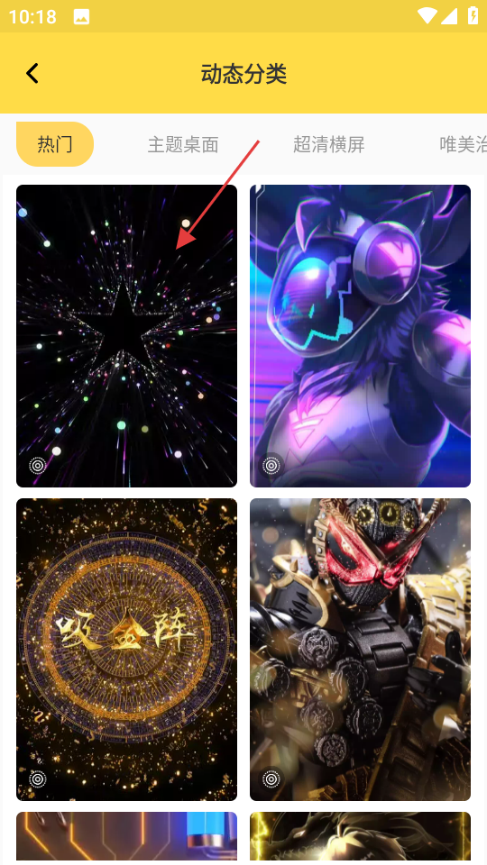 2、在分类页面,点击动态壁纸下的热门分类,进入动态分类页面。