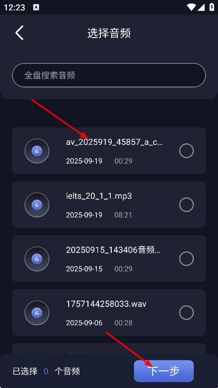 3、选择要处理的音频后,点击下一步,进入调音页面。