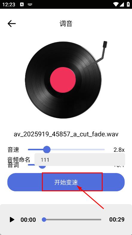 4、设置好参数后,点击开始变速,进行音频变速操作。
