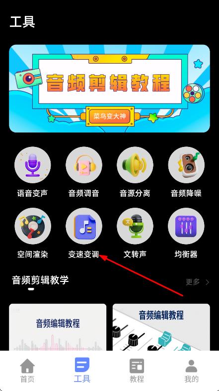 2、在工具页面,点击变速变调,进入选择音频页面。