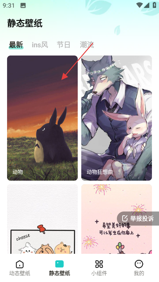 2、在静态壁纸页面,选择喜欢的壁纸,比如动物类的壁纸点击进入。