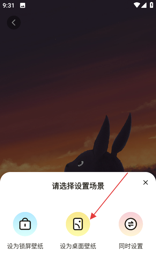 4、在弹出的设置场景选择框中,点击设为桌面壁纸,将壁纸设为桌面壁纸。