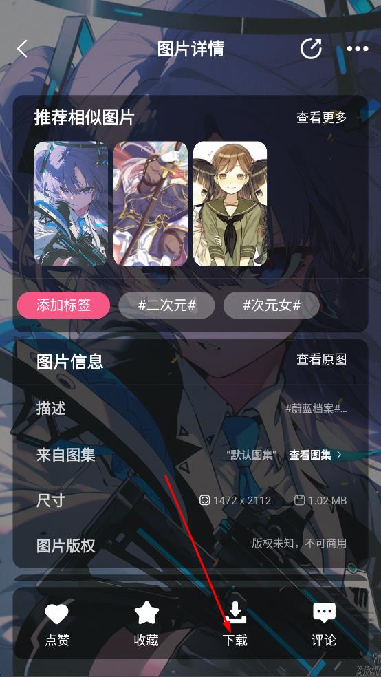 4、随后在图片详情页,点击下载,下载该壁纸。