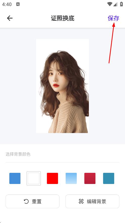 3、保存导出照片:确认底色替换效果满意后,点击“保存”按钮,选择需要的图片分辨率,软件会将处理好的证件照保存到手机相册,方便后续打印或线上提交使用。