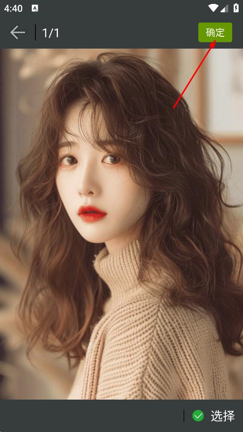 2、在图片选择页面,选好图片后,点击确定,进入证照换底编辑页面。