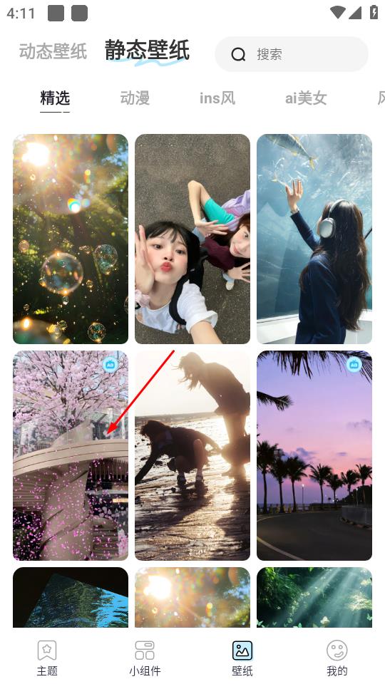3、在静态壁纸列表中,选择喜欢的壁纸并点击。