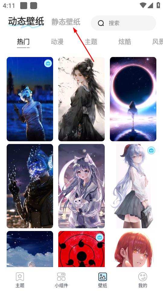 2、在壁纸页面,点击静态壁纸,进入静态壁纸专区。