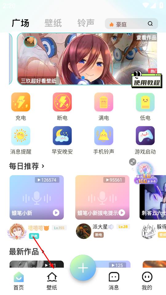 1、在空空鱼壁纸首页点击页面底部的壁纸,进入壁纸页面。