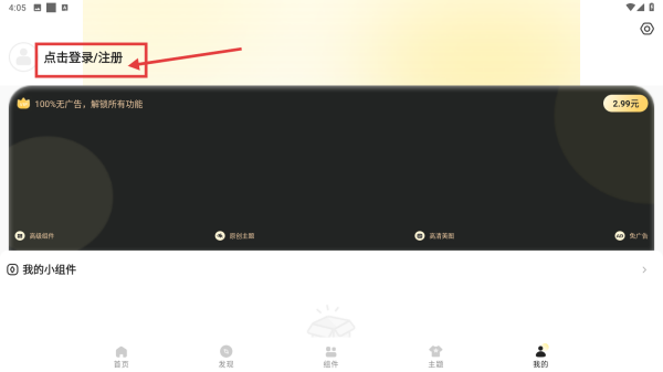 1、打开桌面美化类应用如奶油桌面,点击底部我的选项,进入个人中心页面。