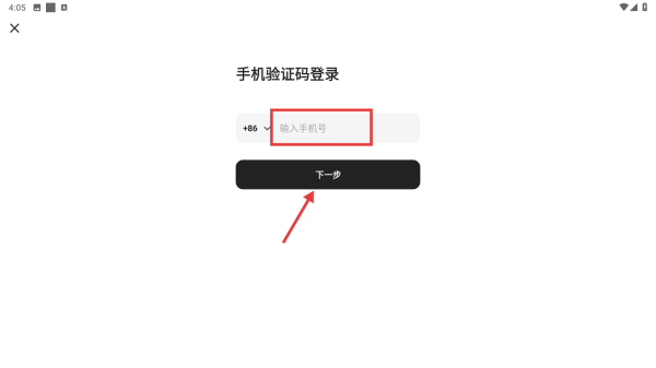 4、在手机验证码登录信息填写页面,输入手机号,点击下一步按钮,获取验证码后完成登录操作。