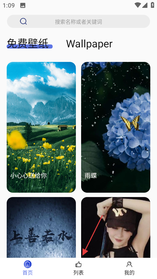 1、在彩虹主题壁纸首页点击底部列表,进入列表页面。