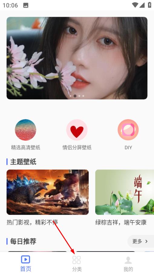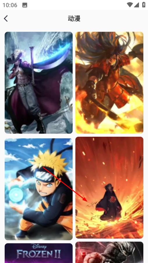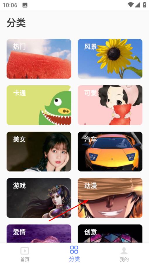 2、在分类页面,点击动漫分类,进入动漫壁纸列表页面。