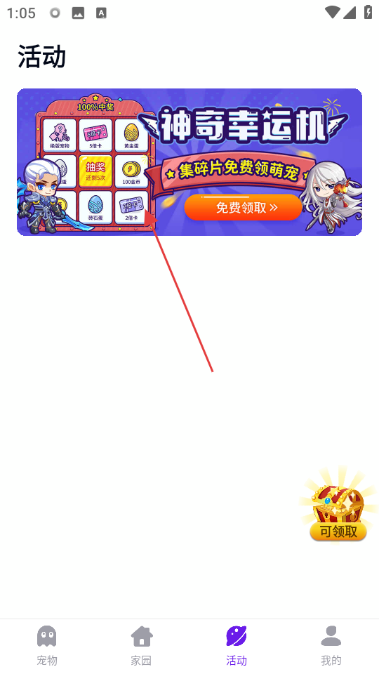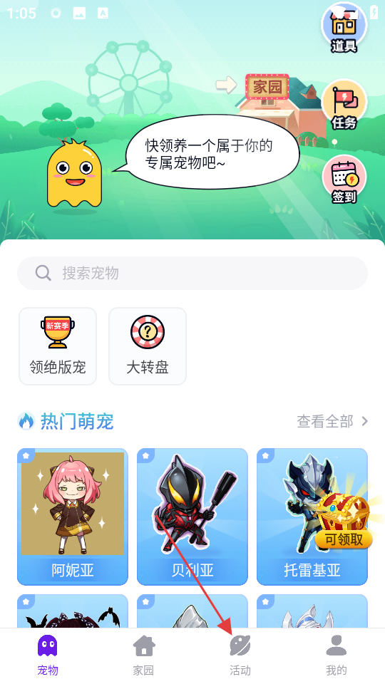 1、打开互动桌面宠物,点击底部活动进入活动页面。