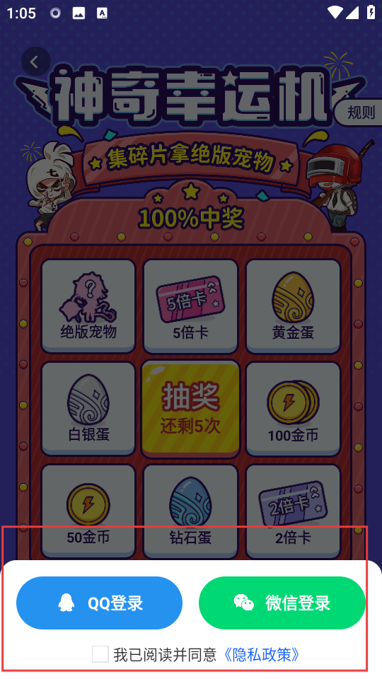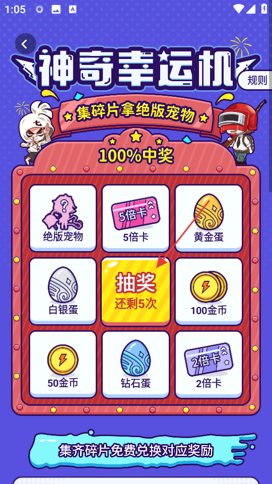 3、在神奇幸运机页面,点击抽奖有概率拿到绝版宠物。