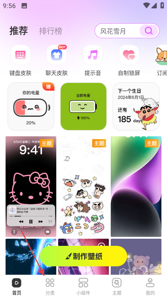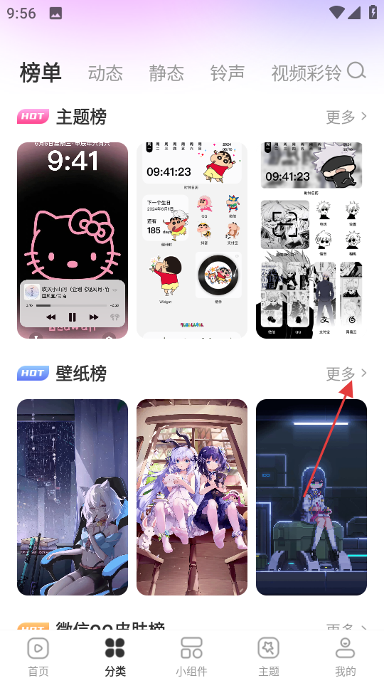 2、在分类页面,点击壁纸榜旁的更多,进入壁纸榜页面。