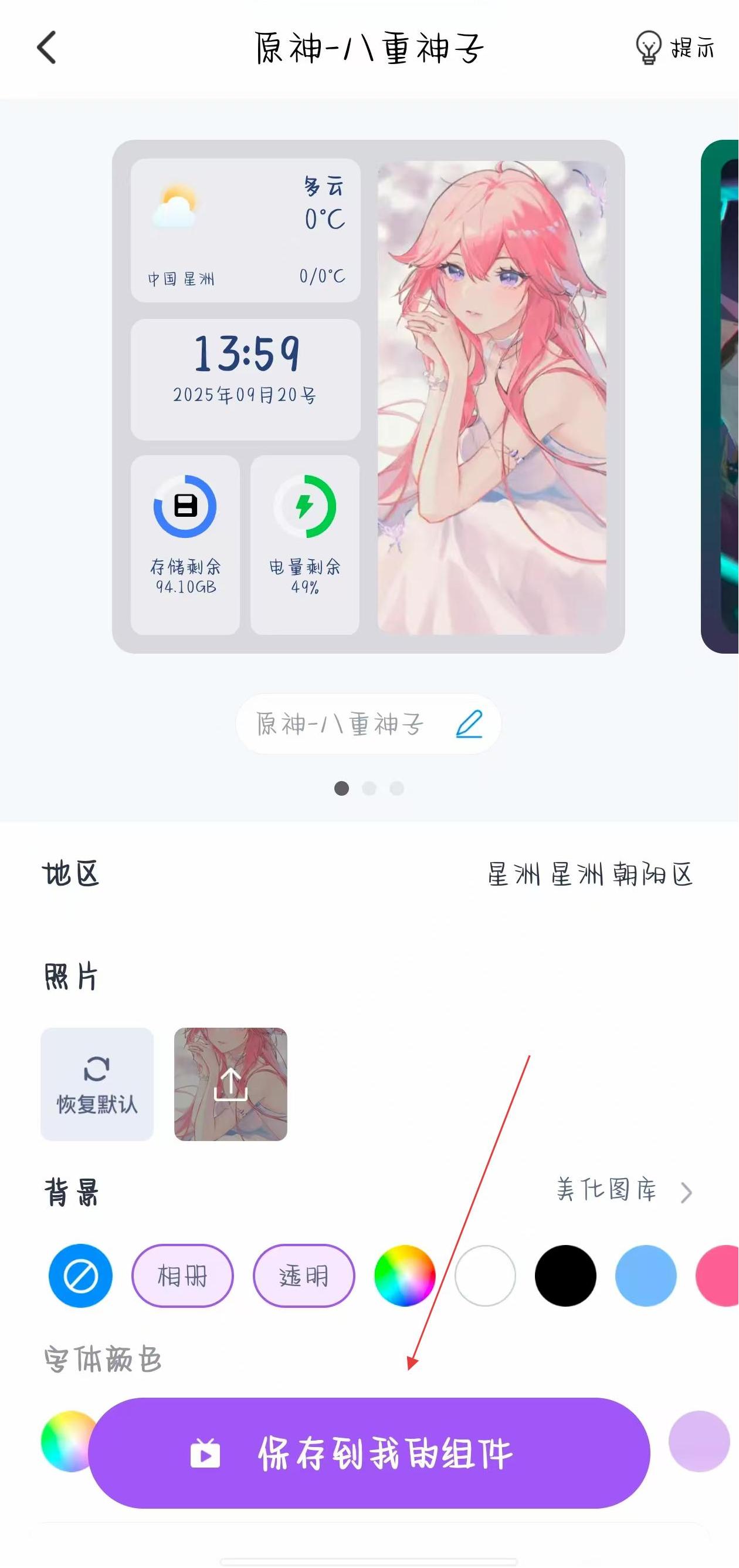 3、在小组件详情设置界面,可对参数进行调整,设置完成后点击保存到我的组件按钮。