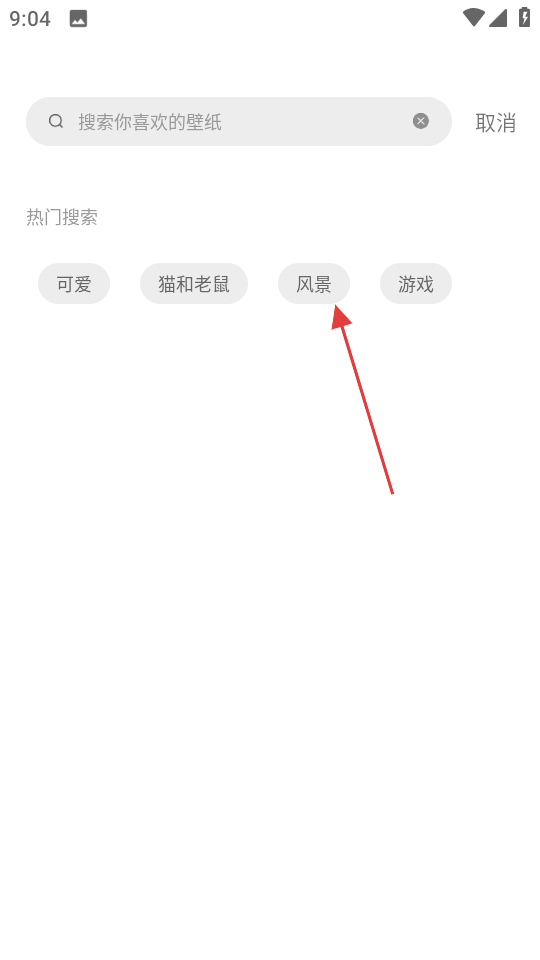 2、在搜索页面,点击热门搜索里的风景分类。