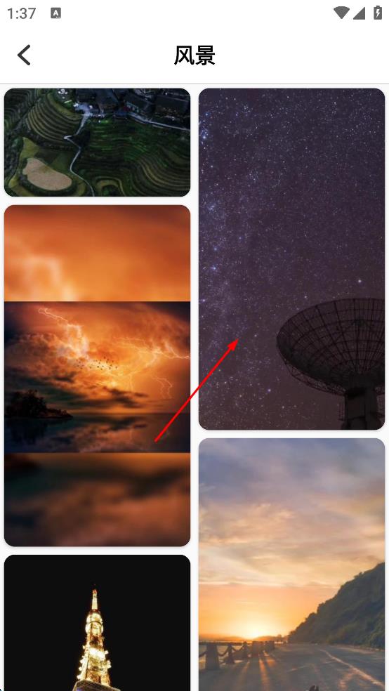 2、在风景壁纸列表里,选中心仪的星空雷达壁纸,进入壁纸详情页面。