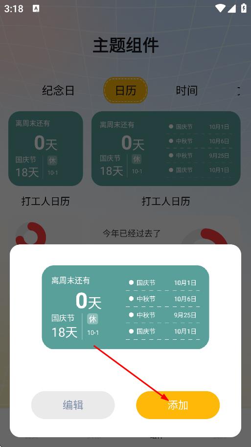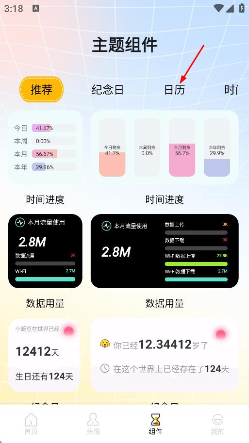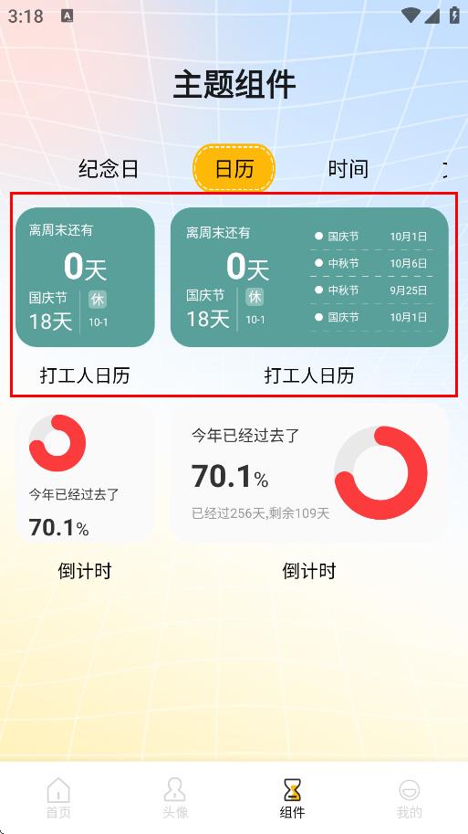 3、在日历类主题组件中,选择喜欢的组件,如打工人日历。