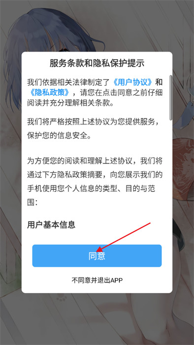1、将桌面上的软件打开,这里会弹出隐私条例,点击【同意】如下图;