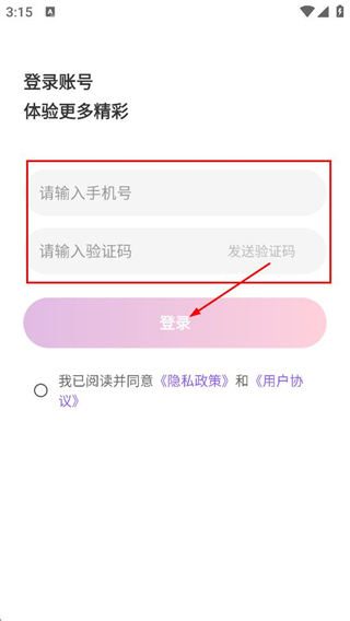 3、在登录账号页面,填写手机号和验证码后,并点击登录,完成登录操作。