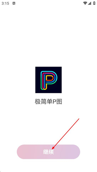 2、在极简单P图的启动页面,点击继续按钮,进入下一步的后续操作。