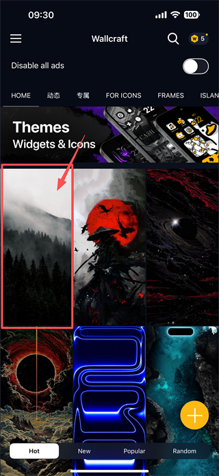 3、在壁纸分类页面,点击喜欢的壁纸样式,进入壁纸详情页面。
