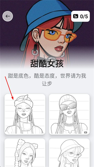 3、在涂色模板选择页面,选择具体模板,进入涂色编辑页面。