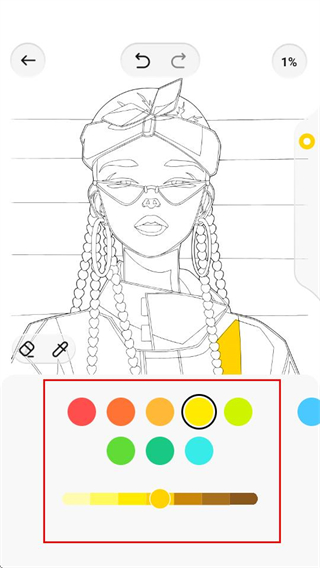 4、在涂色编辑页面,可选择面板中的颜色,对模板进行涂色画画。