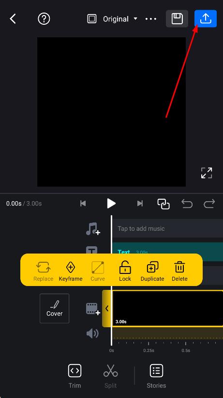 3、编辑好视频后,点击右上角蓝色的上传图标,可进入导出设置环节。