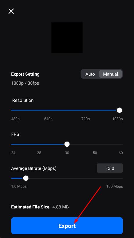 4、手动调整分辨率、FPS、平均比特率等参数,最后点击Export即可导出视频。