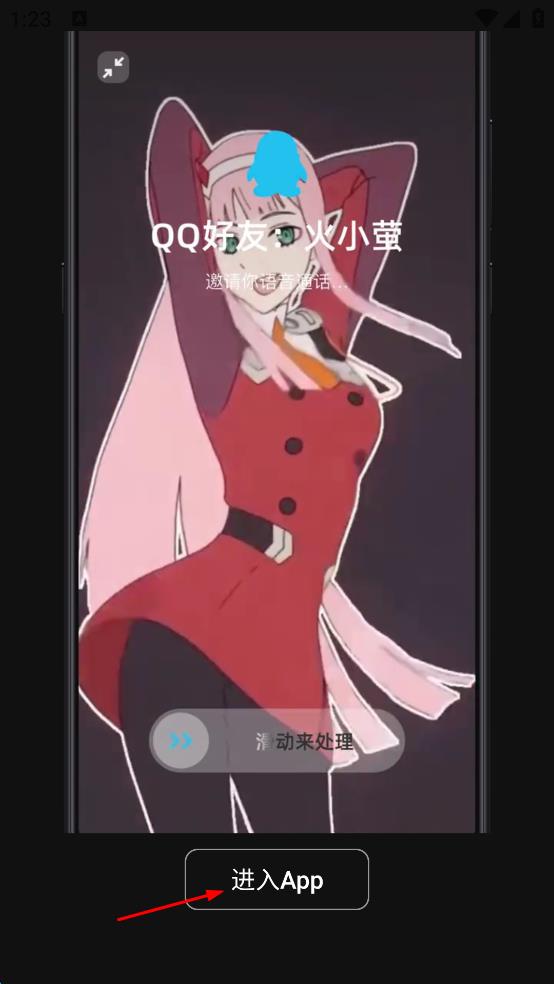2、若有QQ好友语音通话邀请,处理完邀请后,点击“进入App”按钮,进入软件主界面 。