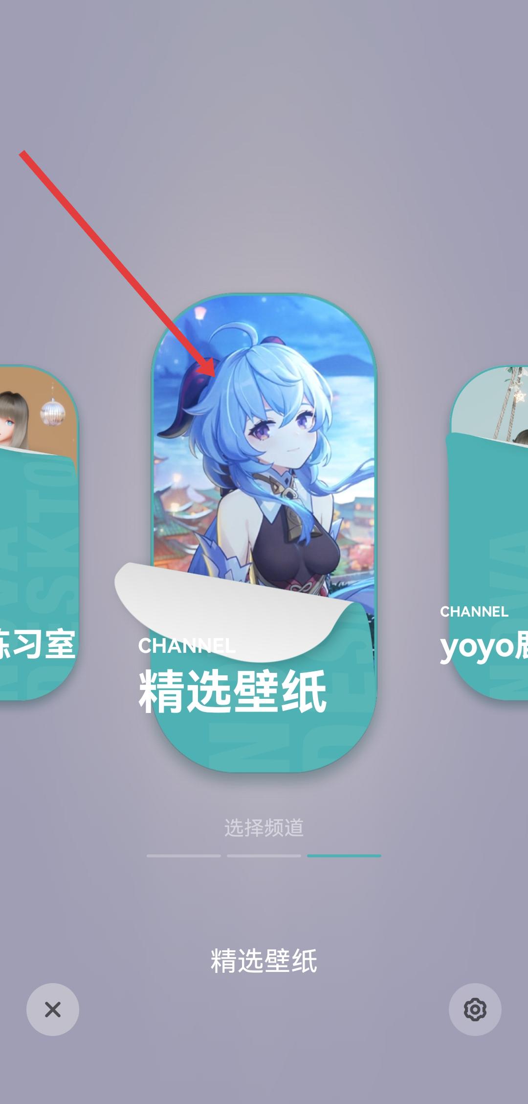 2、在频道选择页面,点击精选壁纸的卡片,进入壁纸推荐的界面。