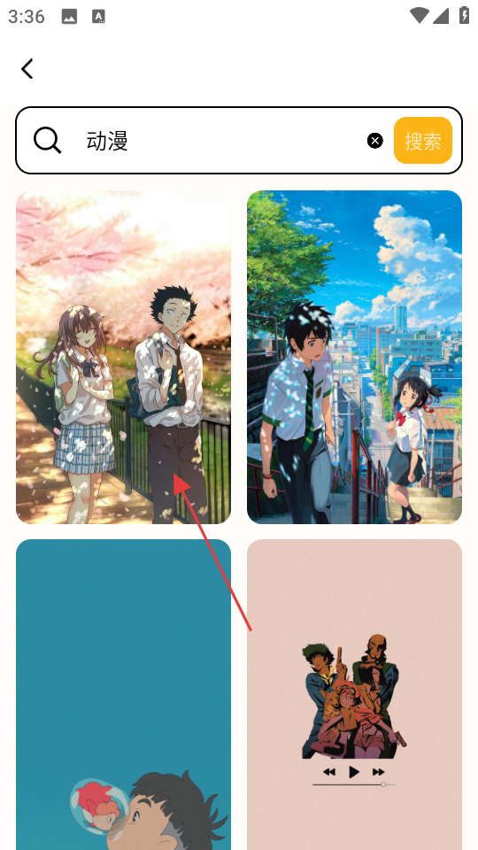 3、在搜索结果中,选择喜欢的动漫壁纸,进入壁纸详情页。