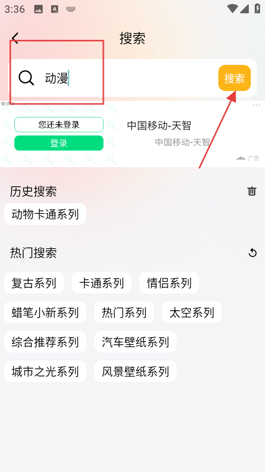 2、在搜索框输入喜欢的类型如动漫,然后点击搜索按钮。