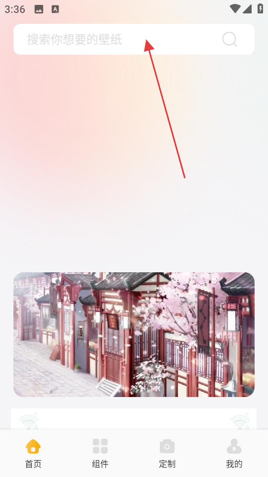 1、打开甜萝壁纸,点击首页的搜索框,进入搜索页面。
