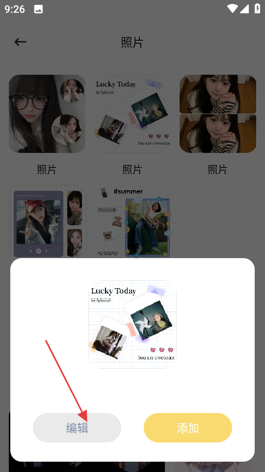 3、在照片操作页面,点击编辑,进入照片编辑页面。