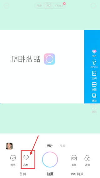 1、打开摄影类APP首页,点击风格选项,进入风格选择页面。