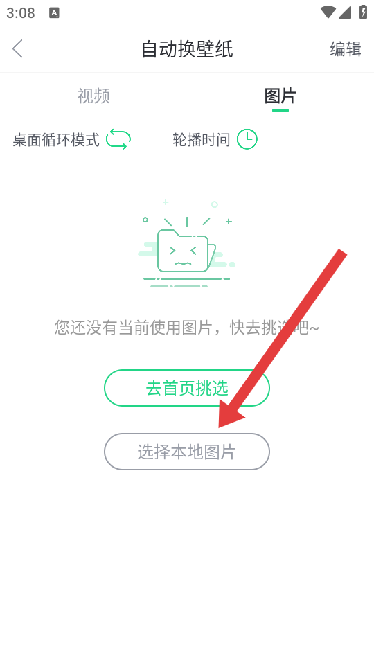 3、在自动换壁纸页面,点击选择本地图片的按钮,进入本地图片选择界面。