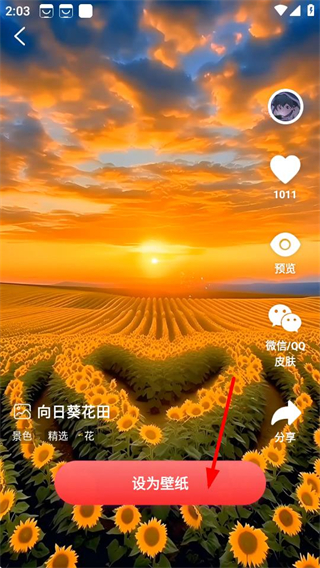 3、在壁纸详情页面,点击设为壁纸按钮,完成壁纸设置操作。