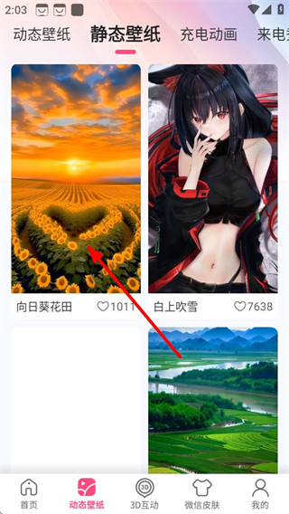 2、在静态壁纸页面,选择要使用的壁纸,进入壁纸详情页面。