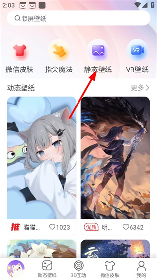 1、在超萌壁纸首页,点击静态壁纸选项,进入静态壁纸页面。