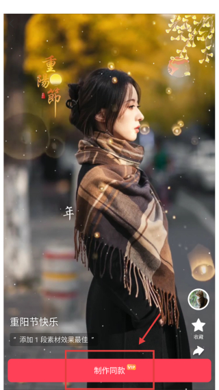 4、在模板详情页,点击制作同款按钮,开始制作同款重阳节主题视频。